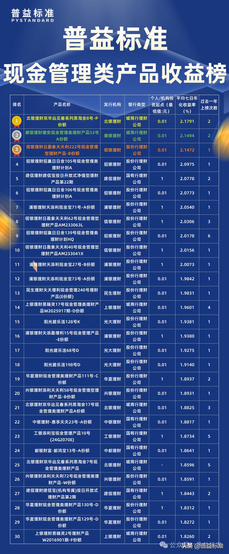 本期榜单由普益标准根据公开渠道披露的数据,选取2月底存续的纯固收类公募净值型人民币理财产品...